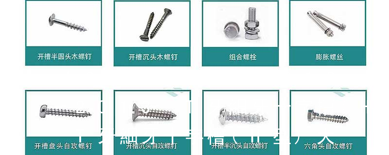 主要分類包括普通螺絲、機螺絲、自攻螺絲和膨脹螺絲三種。 有頭螺釘Cap screw 過去限于全牙的扣件。 六角頭螺釘Hex cap screw與大六角螺栓Hex bolt 顧名思義為頭部為六角型的外螺紋扣件,設計為使用扳手轉動。依照ASME B18.2.1標準,六