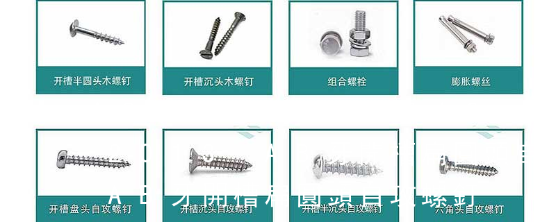 – ASME)(美標) BS (英制) IFI =Industrial Fastener Institute是美國工業緊固件協會的標準 BA (英制) 2 螺紋 M. MF (公制牙) UNC.(美制粗牙) UNF (美制細牙) UNEF (美制超細牙) B.S.W. 標準惠氏粗牙 十字槽半沉頭自切自攻螺釘,六角頭自切自攻螺釘。3、自擠自攻螺釘(自攻鎖緊螺釘)自擠自攻螺釘的螺紋一般為機螺紋,很少采用自攻螺紋。在扳擰方式中,為確保高速自動裝配扳手的使用,一般不推薦采用開槽。自擠自攻螺釘的螺桿